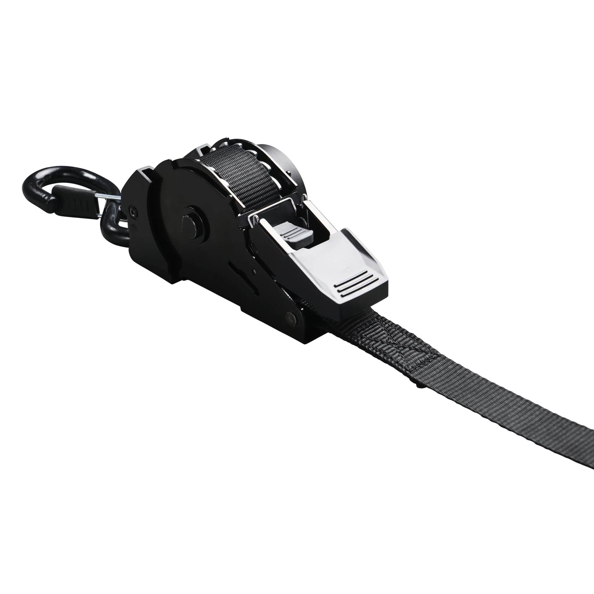 The NERO-R takes everything you love about the original NERO and adds the convenience of a clean, automatic retraction system. No more loose webbing flapping in the wind or tangled straps—just pull, ratchet, and let it retract back into its housing when you’re done.